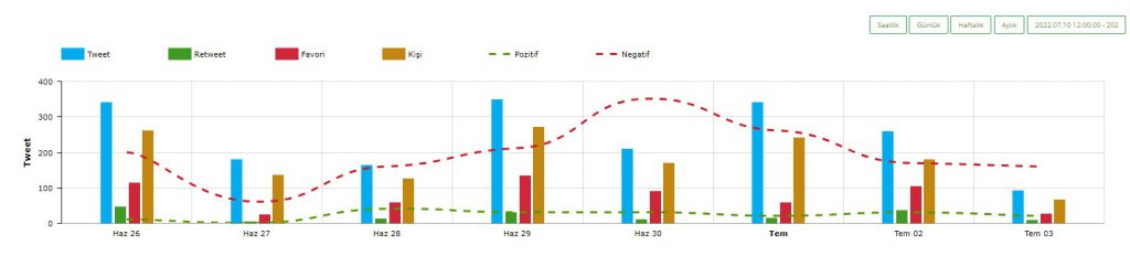 Aşağıda yer alan analiz sonuçları 26 Haziran 2022 – 03 Temmuz 2022 tarihleri arasında Twitter platformu için sunulmuştur. Diğer platformlara ve arama sonuçlarına ait veriler tarafımıza saklıdır.